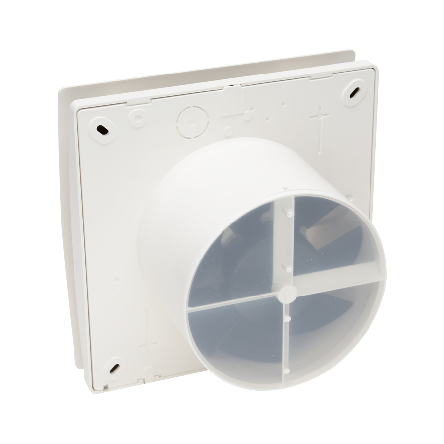 AC Intermittant Extract Fan with aesthetic front cover. Available in three sizes, 100mm, 125mm and 150mm. Options include humidity sensor, adjustable run on timer and pull cord.