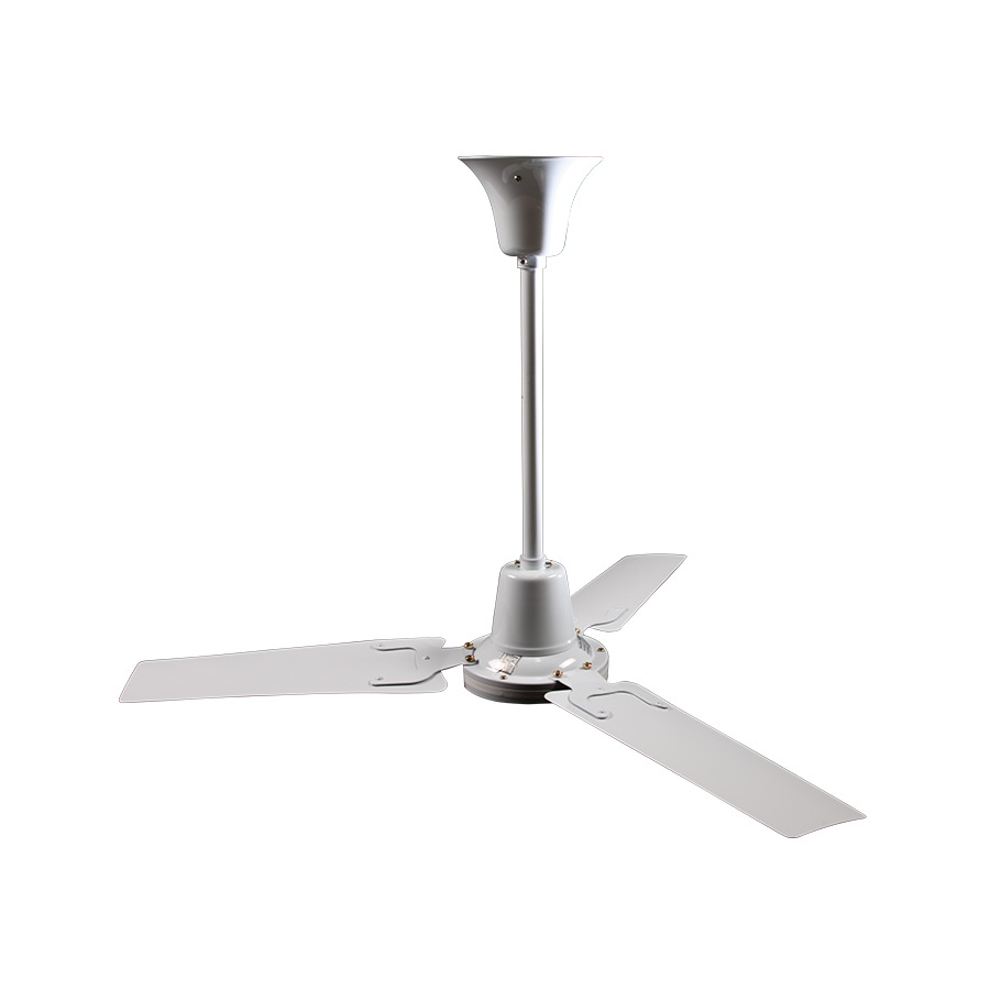 The all metal fan casing provides a long lasting robust construction. The units also have an additional safety steel cable which passes through the drop rod, connecting the motor body to the J-hook mounting bracket.