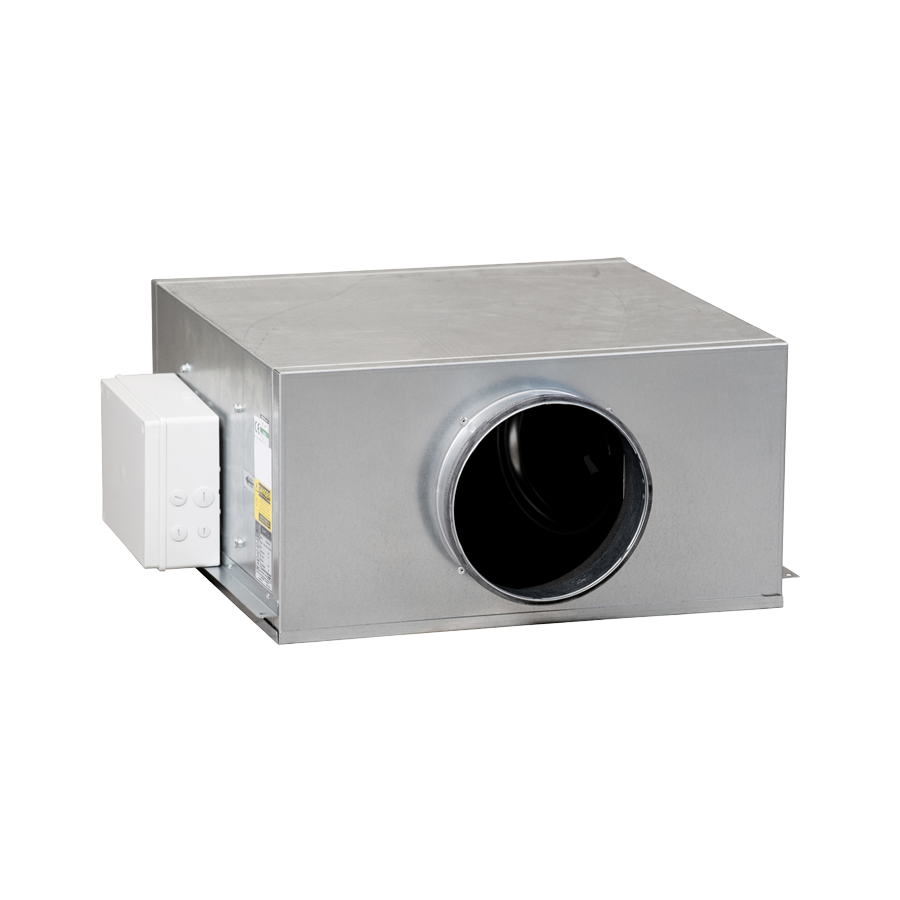 Acoustically lined twin in-line centrifugal fans with demand control. Designed to monitor and control one or more fan units simultaneously, with 6 pre-programmed fan applications. Supplied Multi-function remote control panel with LCD display.