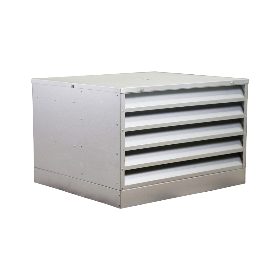 Integral louvered air discharge provides protection against ingress from the elements and is self draining. No additional outlet duct fittings are required. The unit has back draft shutters fitted as standard.